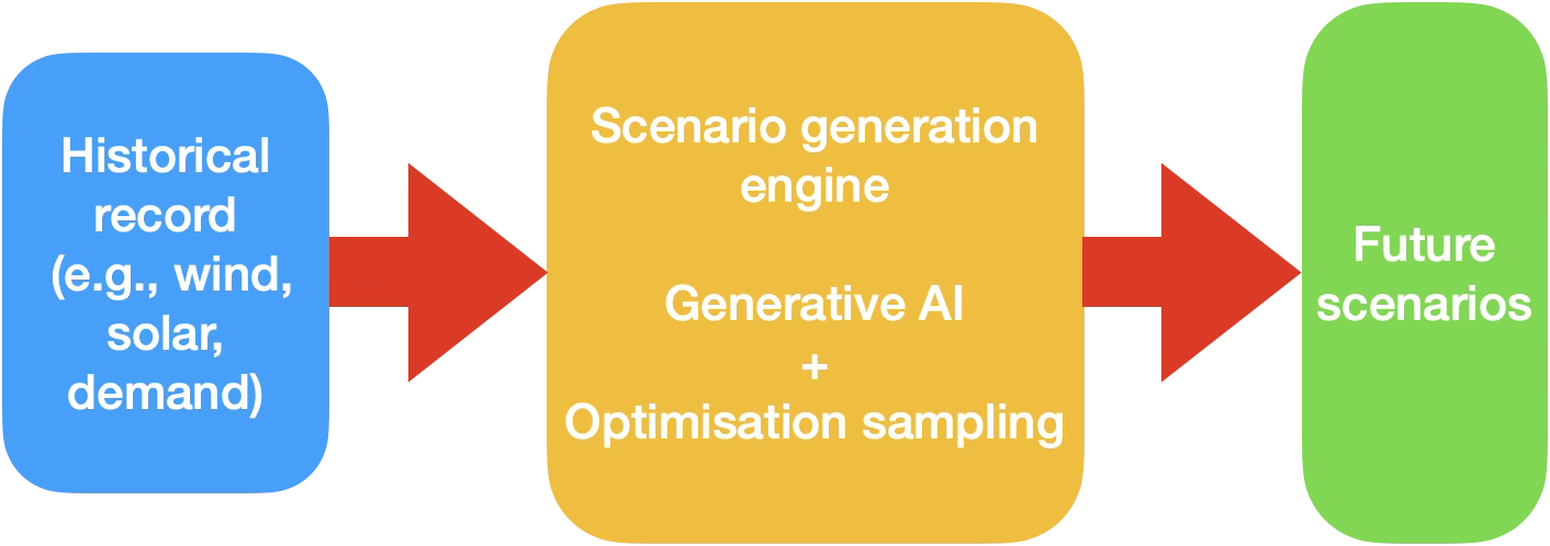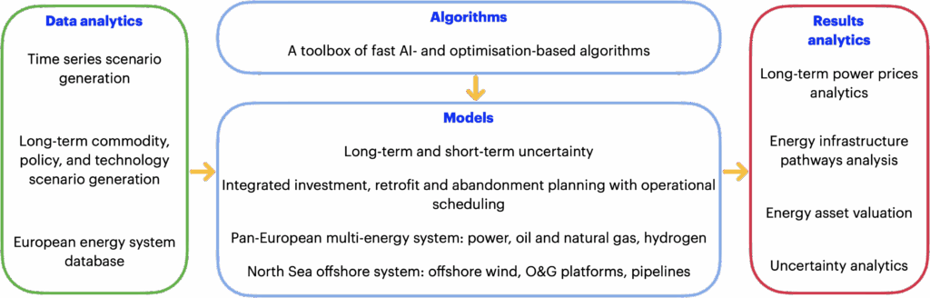 Our technology integrates advanced optimisation and AI methods with explicit representations of uncertainty to support energy system planning and investment decisions. The software is designed to operate at scale, spanning multiple energy carriers, geographic regions, and decision timescales.